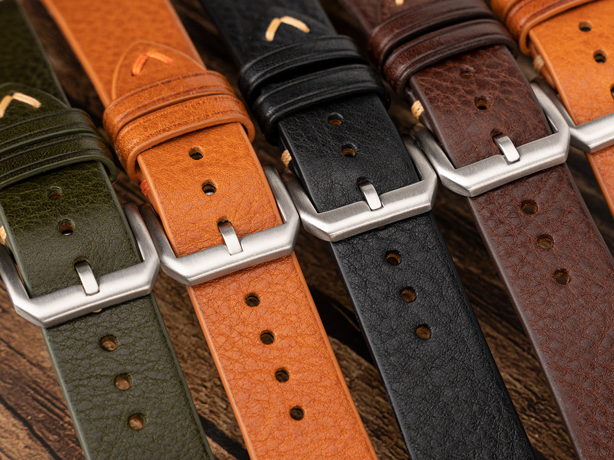 Our Simple Handmade Italian Leather Strap offers timeless simplicity, making it a popular choice for anyone after a quality leather strap.The simple double stitching makes this a very versatile strap with little superfluous detail to detract from the quality of the leather and of course the watch itself. The strap also comes equipped with quick-release spring bars for easy strap changes. The strap is lined with Zermatt leather to keep give the strap some structure and made in 2.5mm thickness instead of our usual 2.2mm, ensuring a sturdy strap even as you go casual.