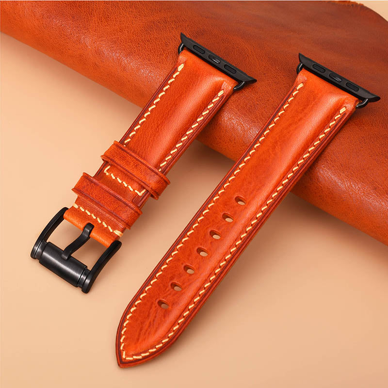 Handmade black buckle Apple strap in vintage waxed calf leather in navy blue for Ultra 2, SE, Ultra Series 9 8 7 6 5 4 3 2 1